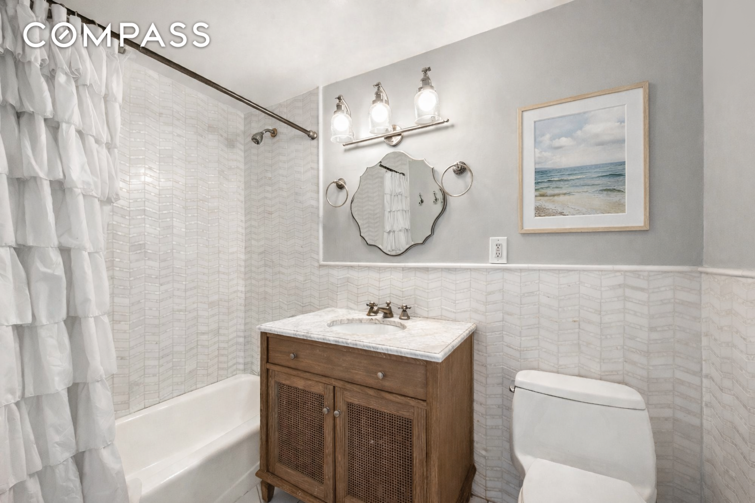 A second full bathroom is located off the hallway leading to the second bedroom. The bedroom is quiet, faces the peaceful courtyard, comfortably fits a queen-sized bed, and offers a large closet.