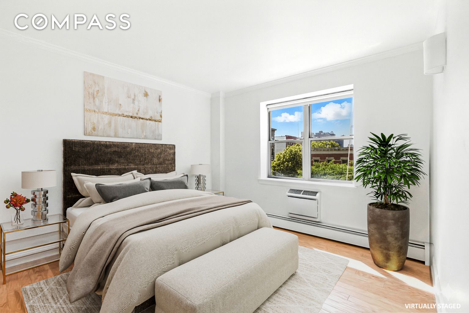 Welcome to this beautifully renovated 2-bedroom, 2-bathroom home with open west-facing views and incredible natural light throughout the day. Perched high enough to enjoy wide open sky views, this apartment offers a peaceful retreat just a few blocks from the newly renovated Marcus Garvey Park.